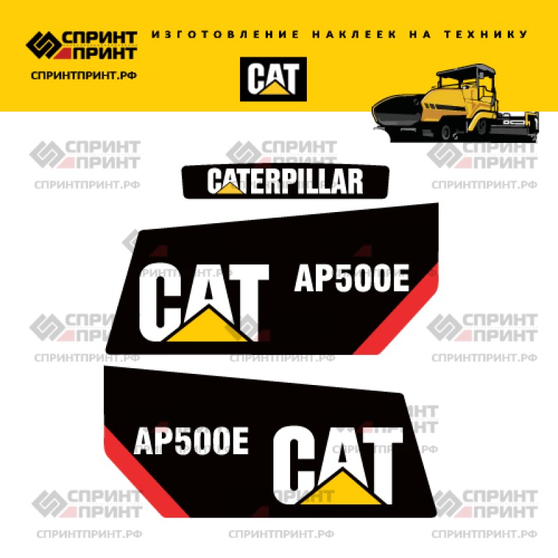 Виниловые наклейки для нанесения на Ваш асфальтоукладчик CATERPILLAR AP500E с указанием Брэнда производителя и модели техники.
