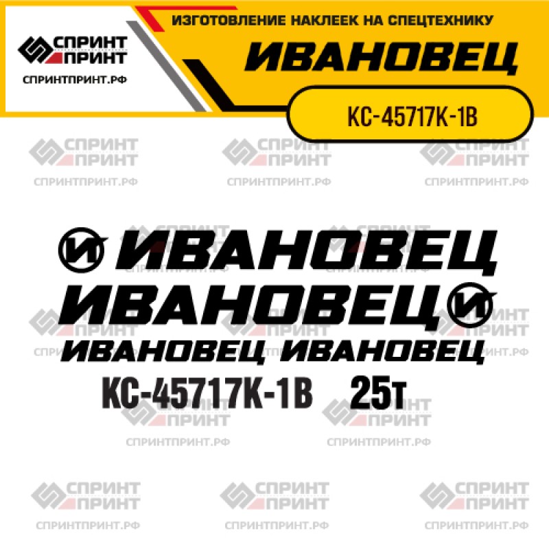Виниловые наклейки для нанесения на Ваш автокран ИВАНОВЕЦ КС-45717К-1В с указанием Брэнда производителя и грузоподъемностью.