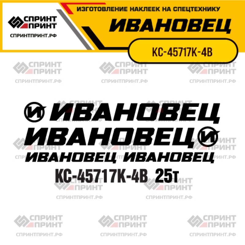 Виниловые наклейки для нанесения на Ваш автокран ИВАНОВЕЦ КС-45717К-4В с указанием Брэнда производителя и грузоподъемностью.