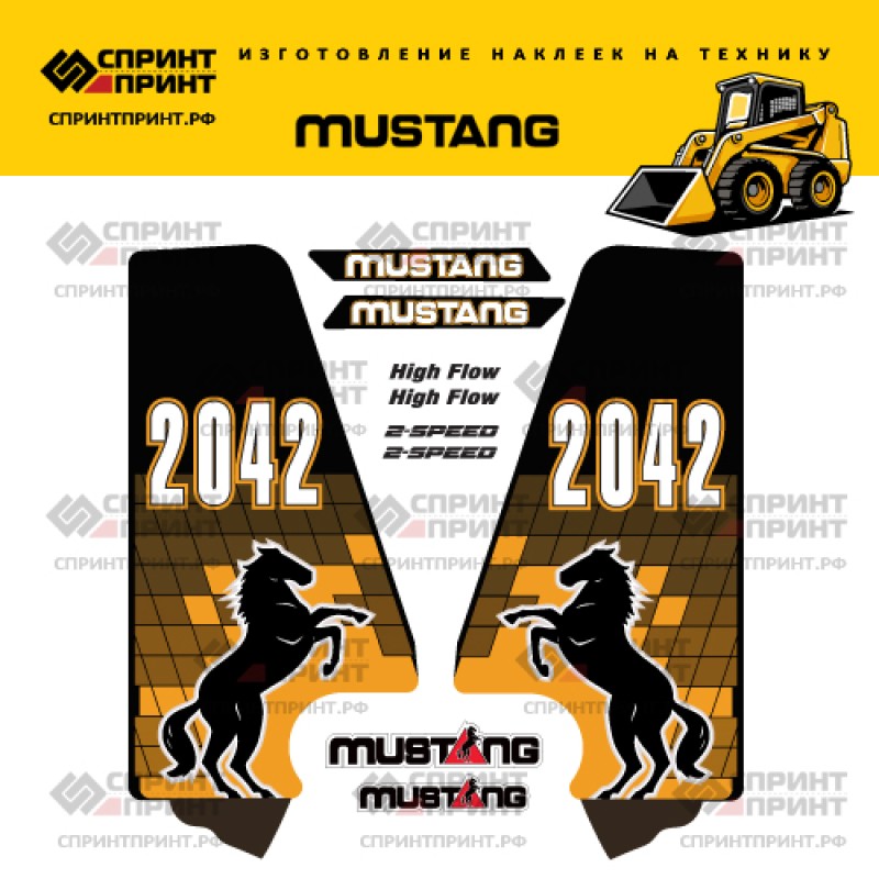 Виниловые наклейки для нанесения на Ваш  мини погрузчик MUSTANG 2042 с указанием Брэнда производителя и модели техники.
